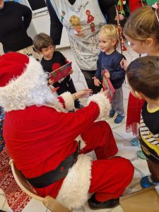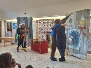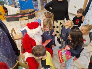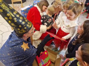Danas su mame razveselile djecu toplom i veselom  predstavom ” Kako je Srećko spasio Božić” te im darovale prekrasne slikovnice .